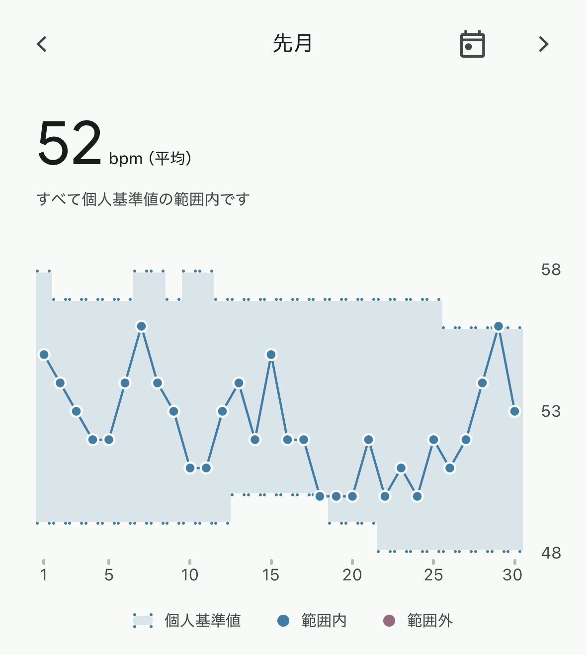 心拍数とは、1分間に心臓が拍動する回数です。私は心拍変動と共に、この心拍数もよく見ています。
