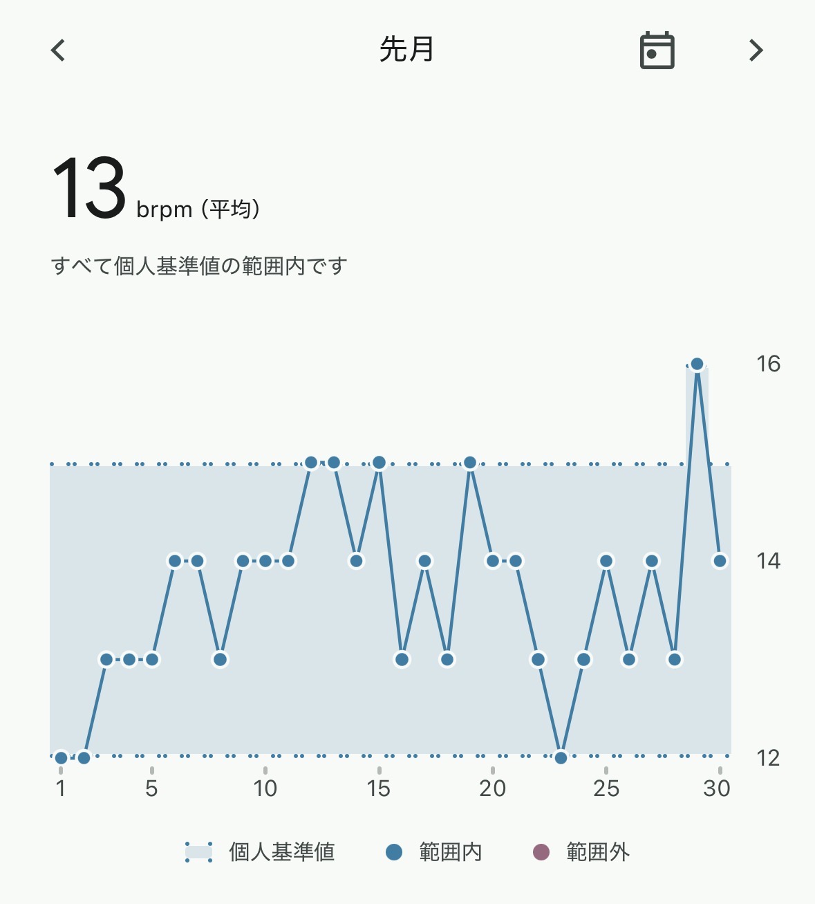 日々の呼吸数をチェックしながら、呼吸数が多い時は意識して深呼吸をしたり、早めに眠るようにして心身ともに回復するように心掛けています。