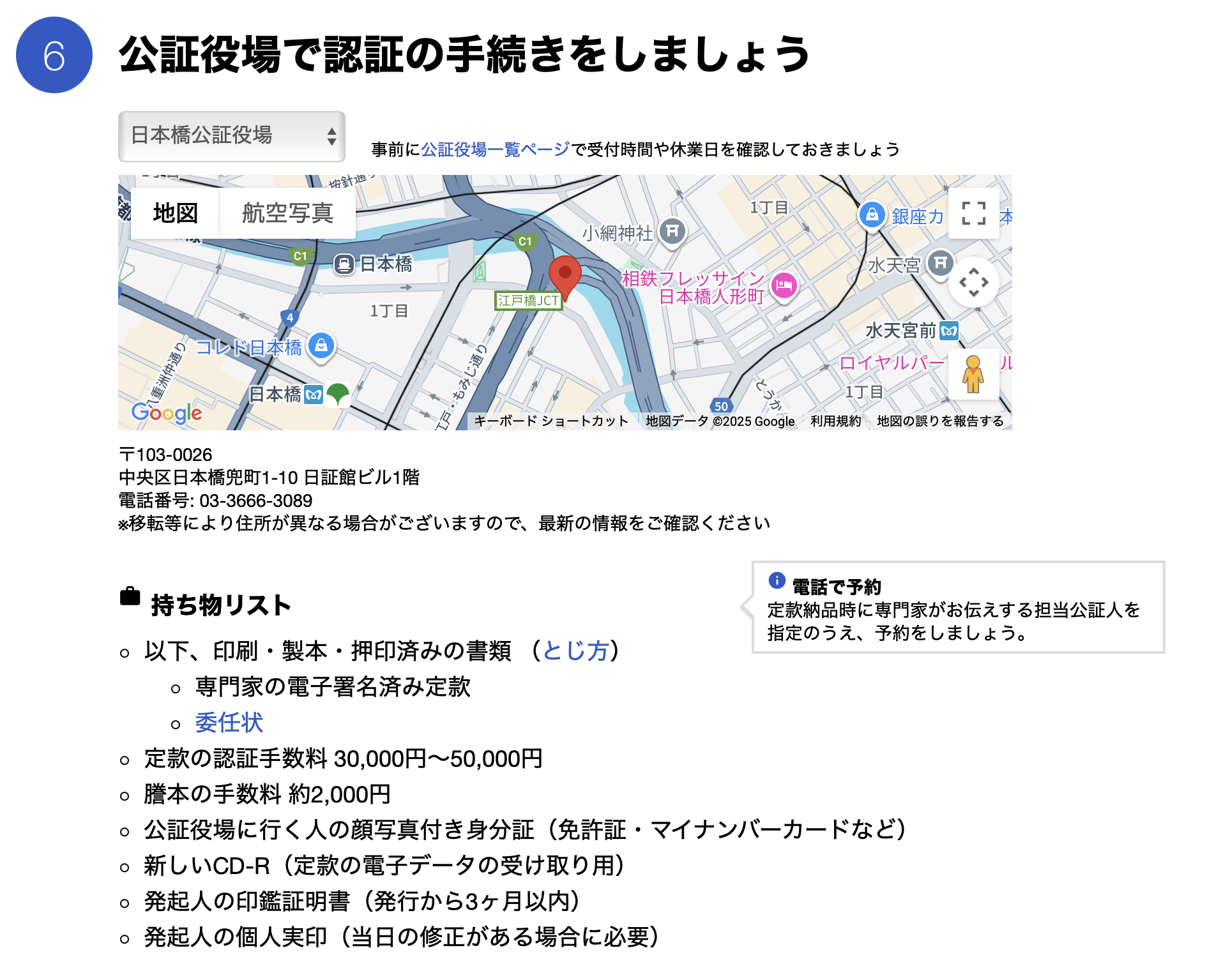 日本橋公証役場(奥の建物内)に定款認証手続きへ行った際の写真